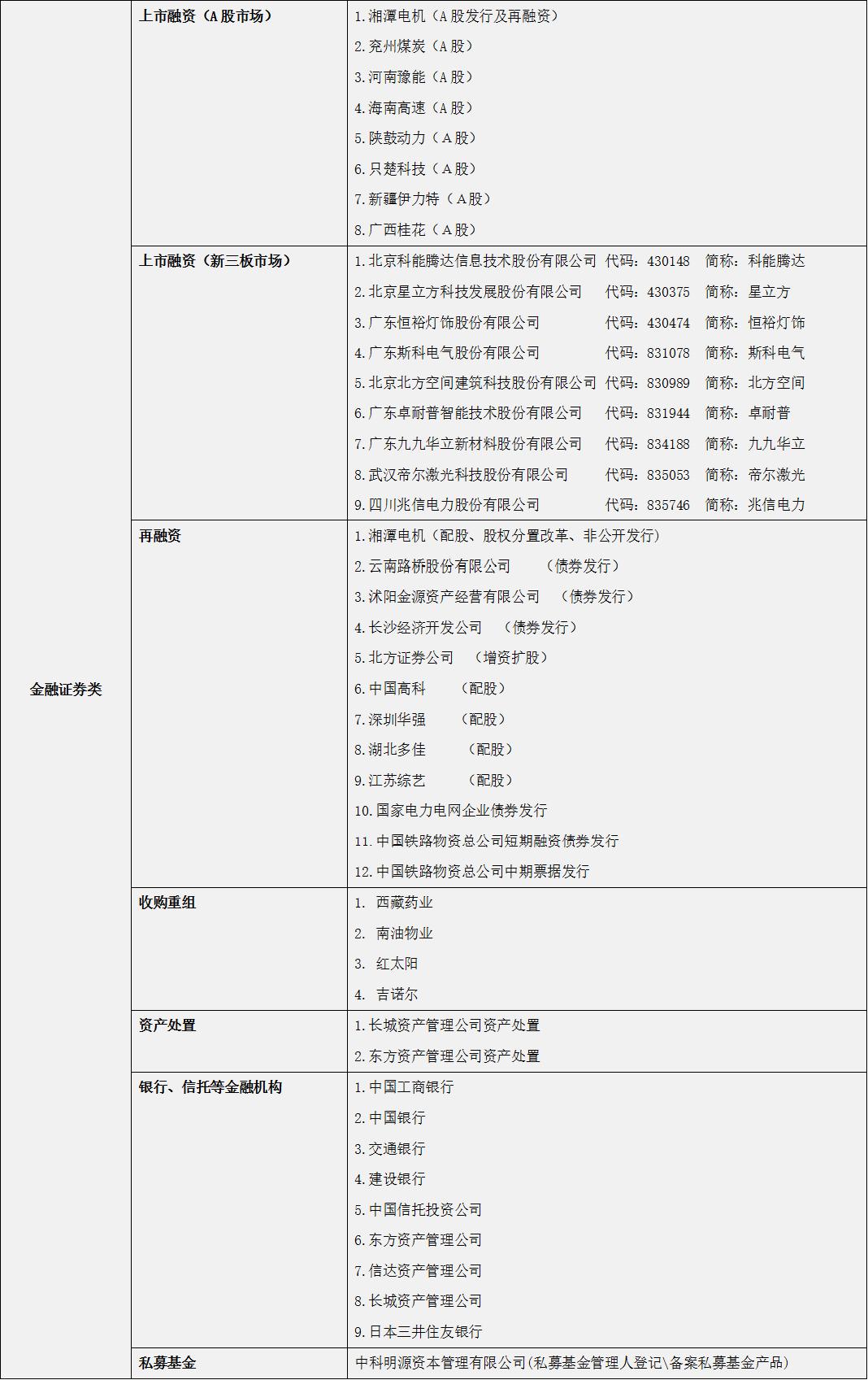 1999年,本所接受湘潭电机集团有限公司的委托参与其改制重组及上市工作,1999年12月26日湘潭电机股份有限公司设立,随后,本所作为湘潭电机股份有限公司发行人法律顾问为其IPO出具法律意见书和律师工作报告,2002年7月18日,湘潭电机股份有限公司公开发行7500万A股并上市,湘潭电机股份有限公司是湖南省第一家在核准制度下获准发行的上市公司,其后本所多次为湘潭电机股份有限公司的再融资提供法律服务,2006年度,湘潭电机股份有限公司申请非公开发行不超过4000万股获准,2010年度,湘潭电机股份有限公司成功配售发行69,242,271股,2011年度,湘潭电机股份有限公司成功发行9.5亿元公司债券,2015年度,湘潭电机股份有限公司成功非公开发行134,920,634股。